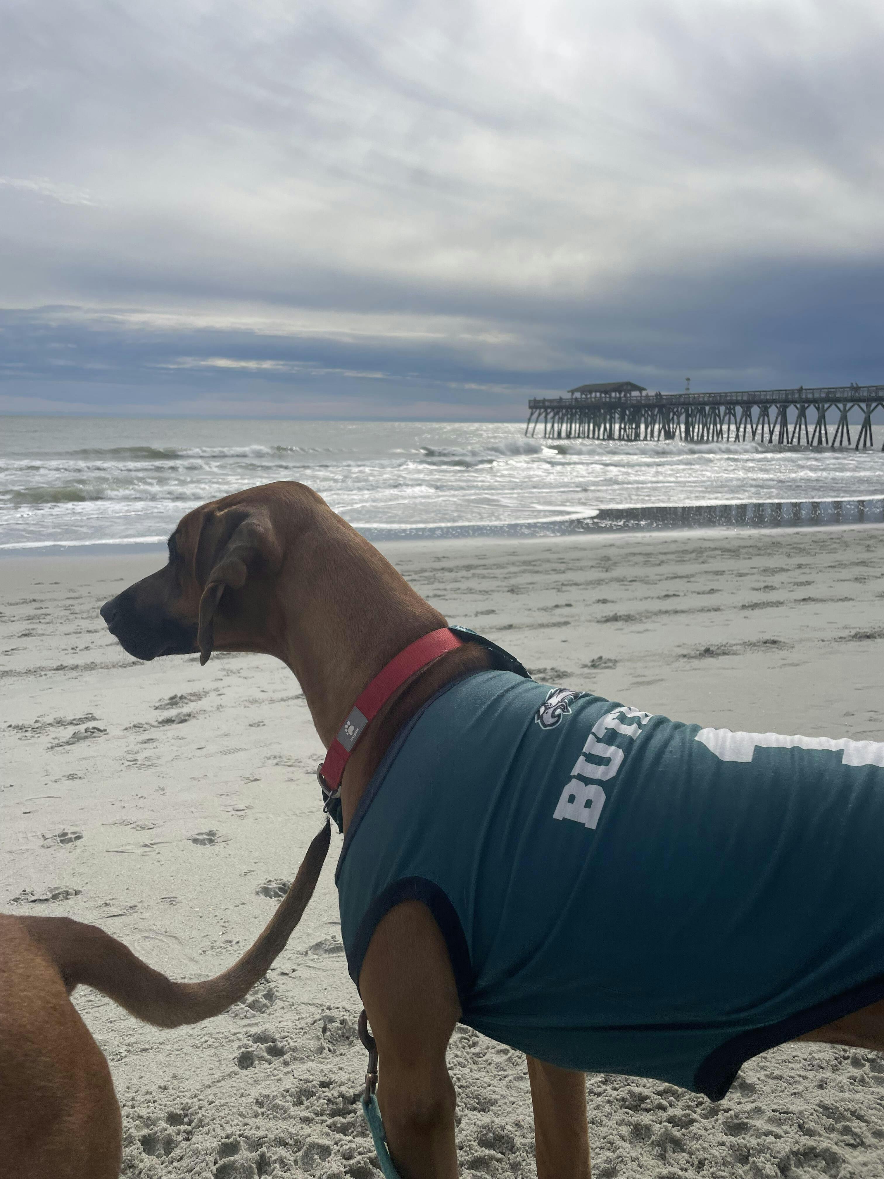 I should have gone up to a 2 X I have 2 Rhodesian ridgebacks and they just needed a size up! One wears his Eagles jersey no matter what and the other - well I just may have to order a 2 xl giants for him!