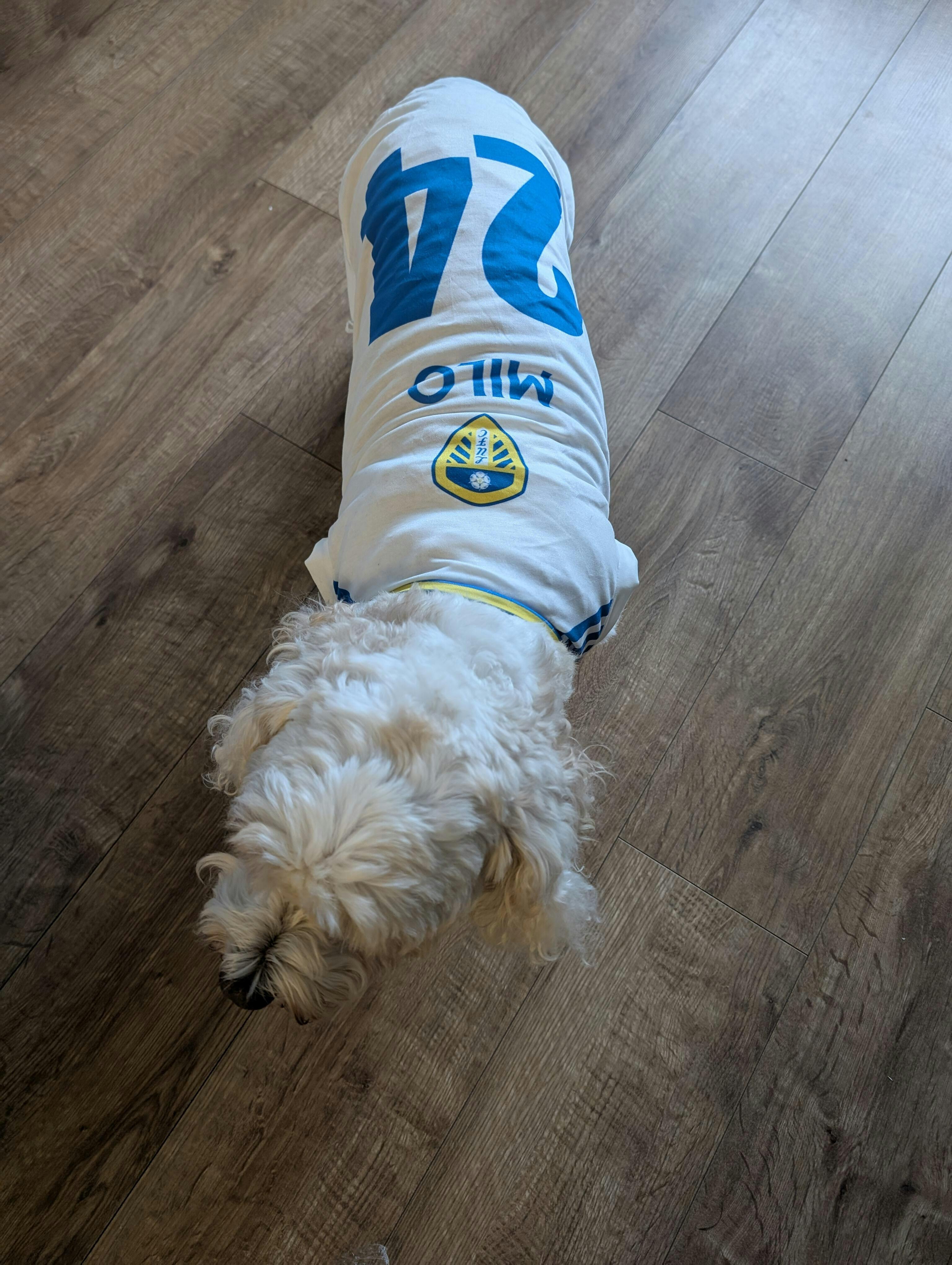 We were very pleased with our Milos Leeds United top. Communication and delivery was good and the top fits well as we have ordered another one for my daughters dog. Would recommend this product.